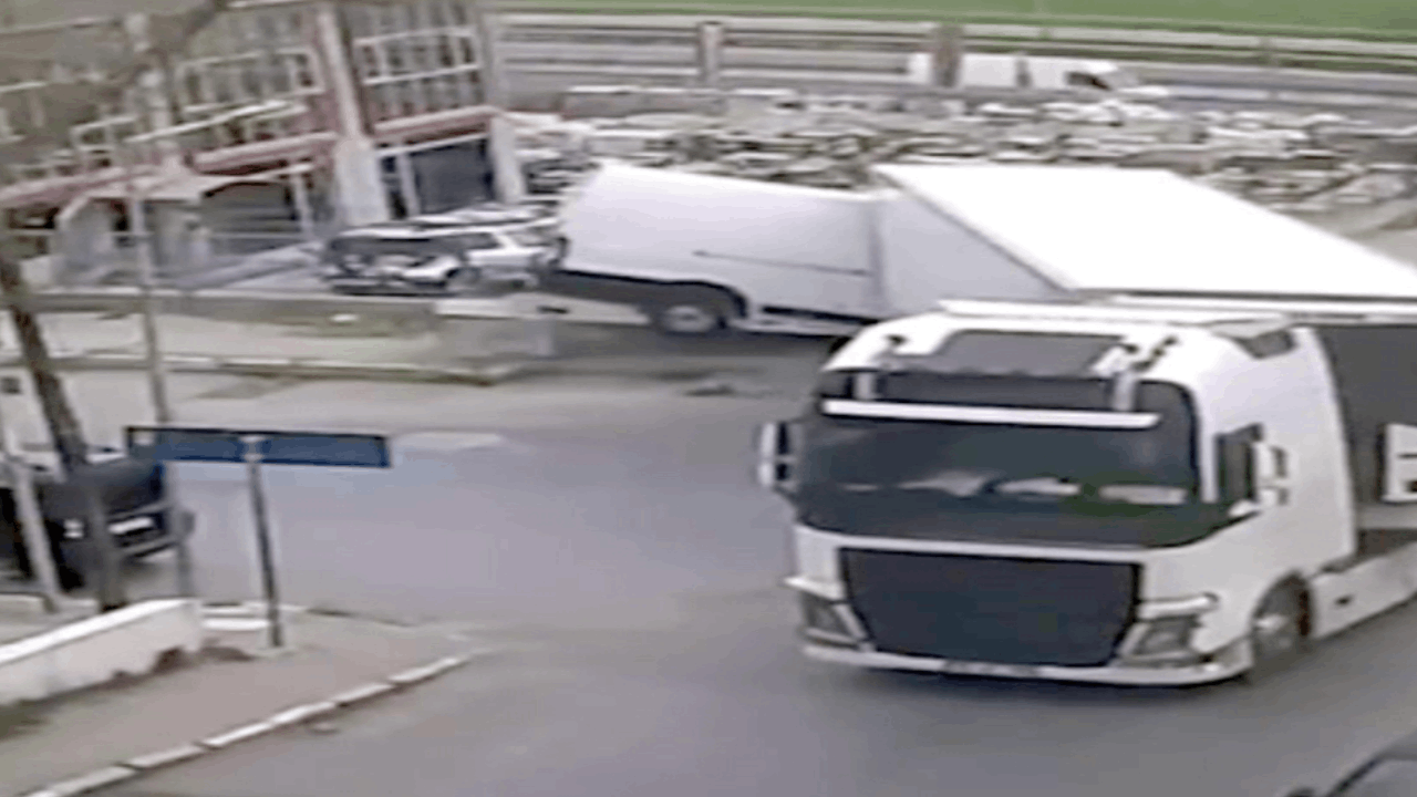 Beylikdüzü'nde iddiaya göre şoförün el frenini çekmeyi unuttuğu TIR kayarak arkasındaki kapalı kasa minibüse çarptı. TIR... ...